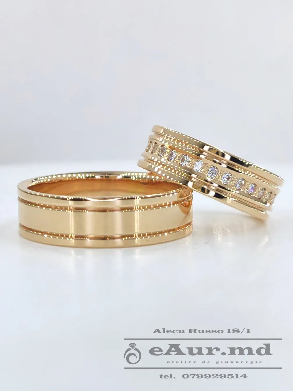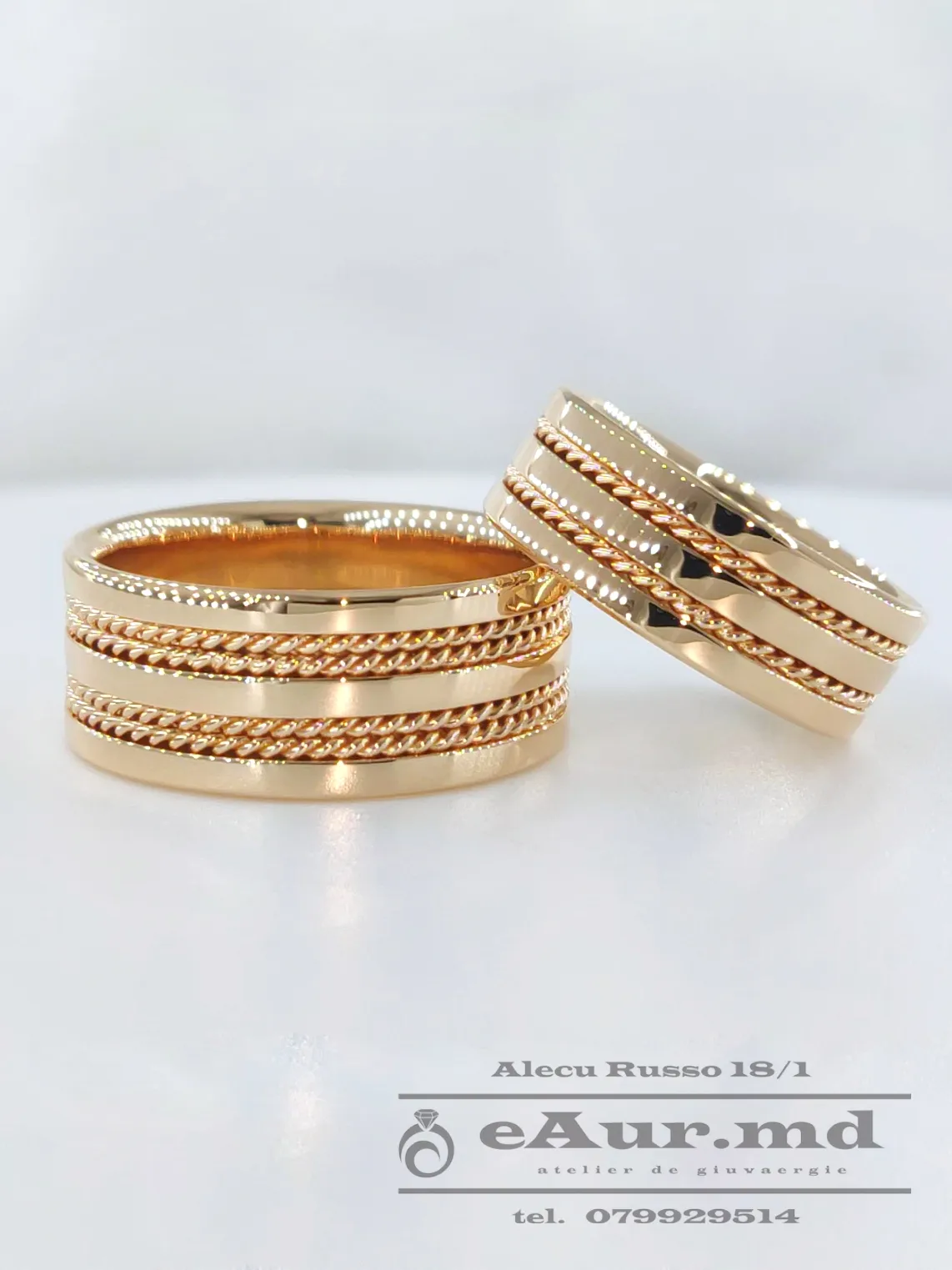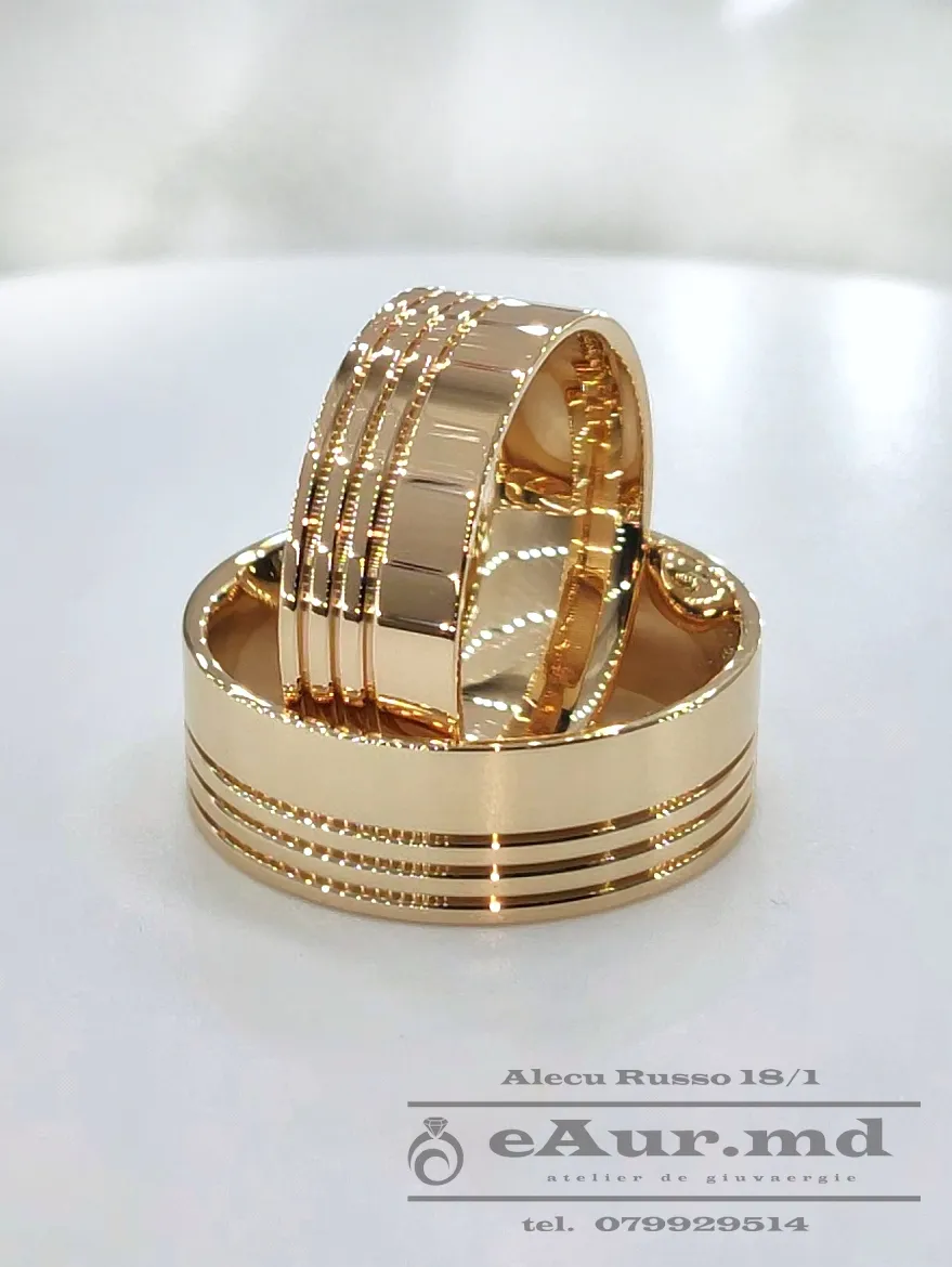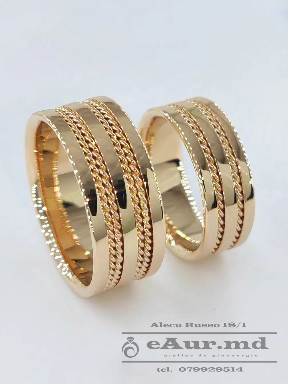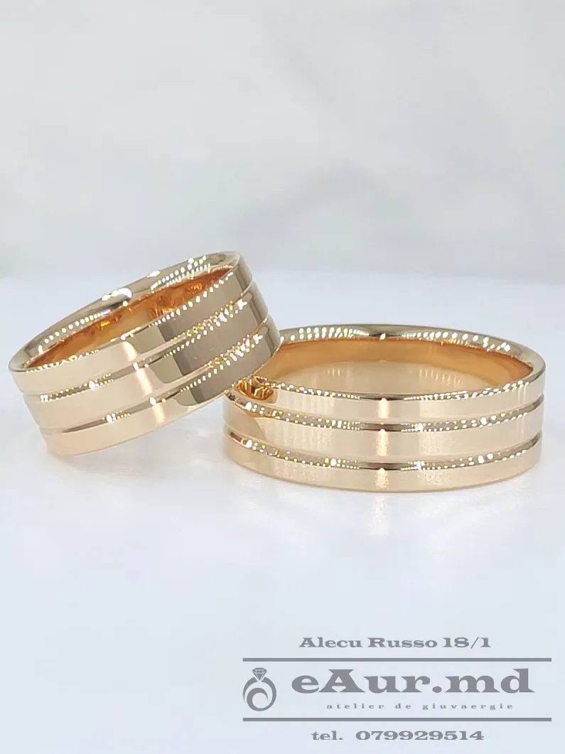 Verighete din aur 585, lățime 8+7mm, 13g, disponibile la comandă, prețul la tel./ Viber/ Watsap