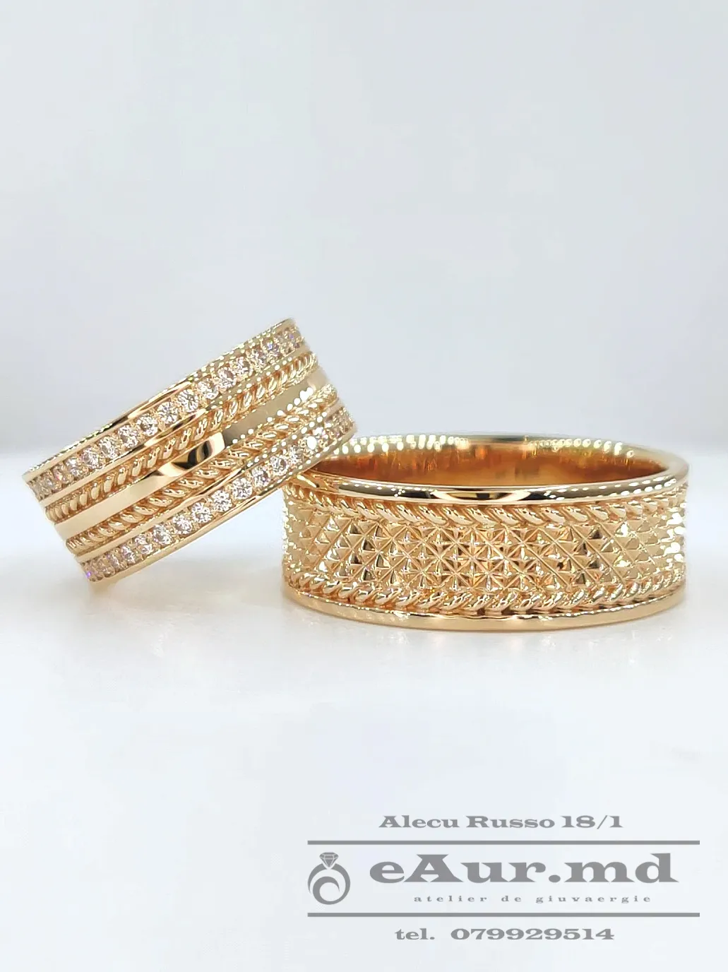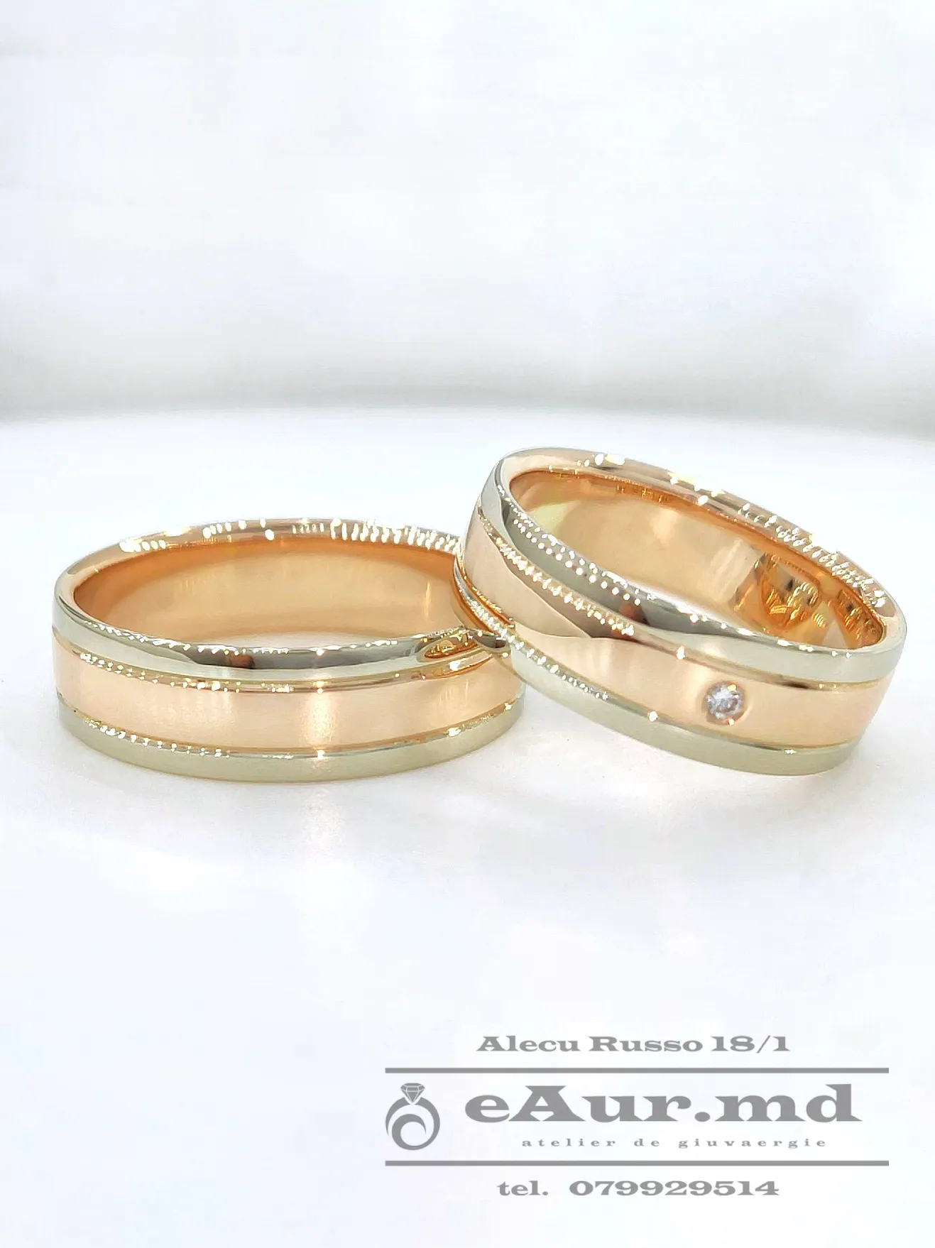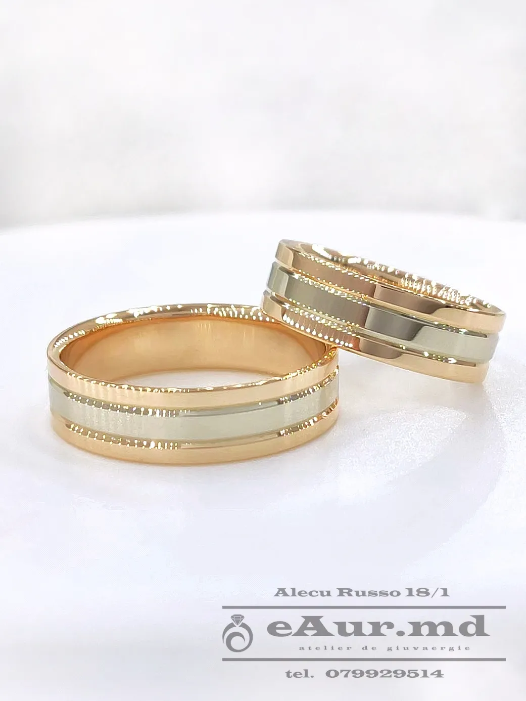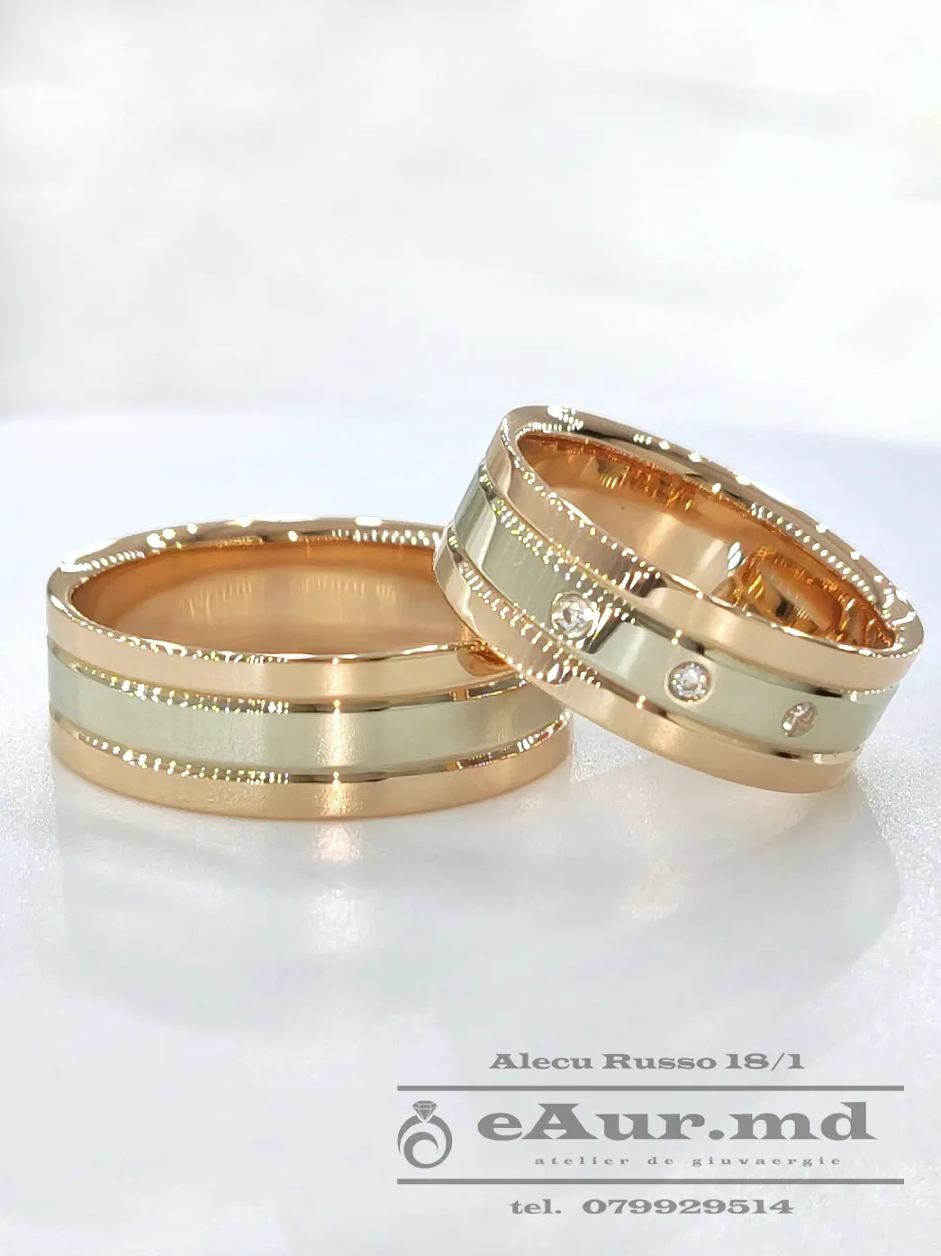 Verighete din aur 585, lățime 8+7mm, 13g, disponibile la comandă, prețul la tel./ Viber/ Watsap