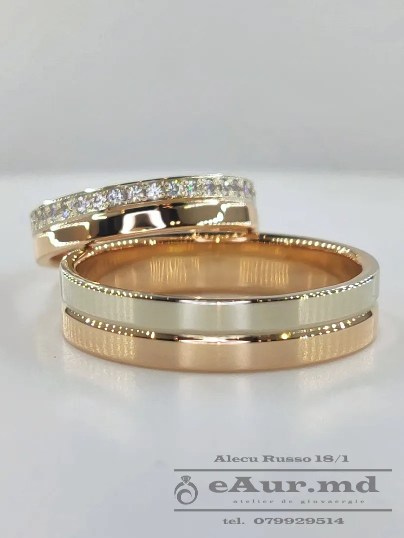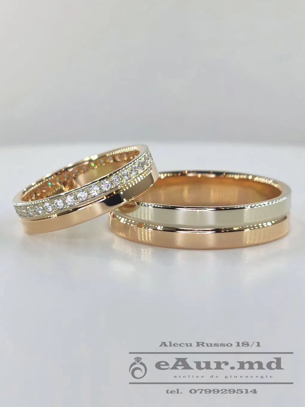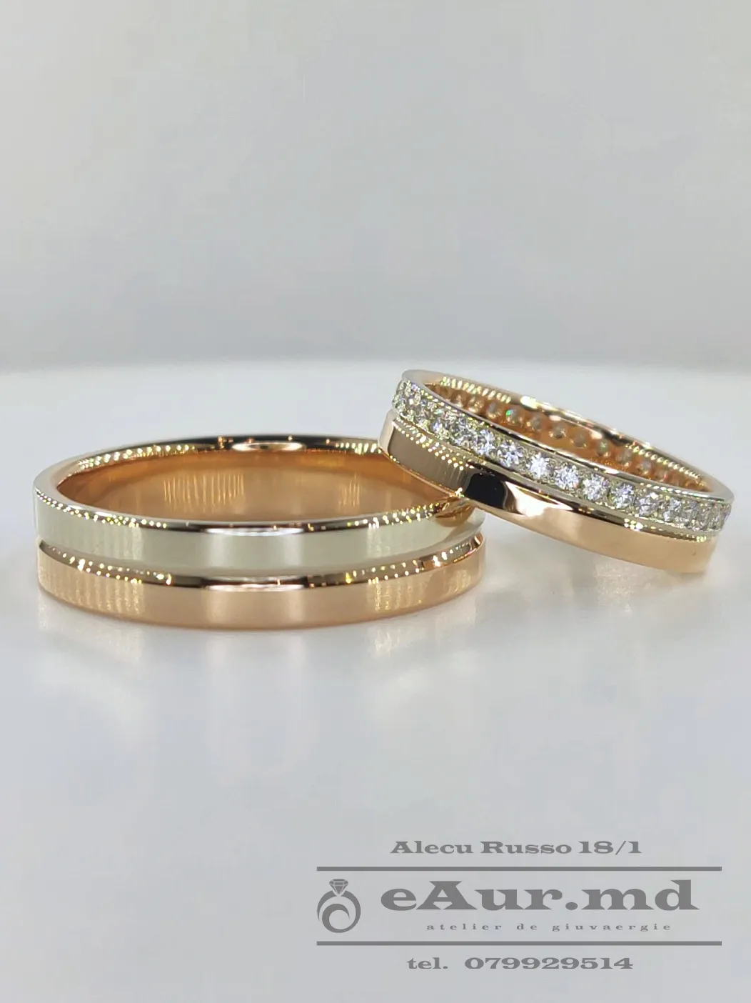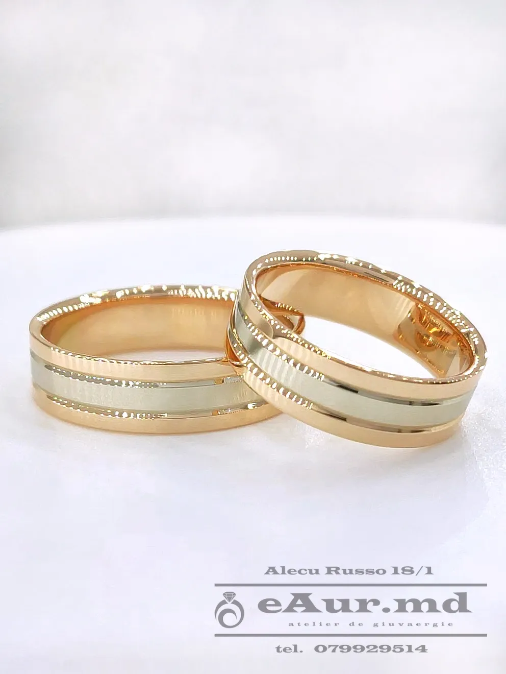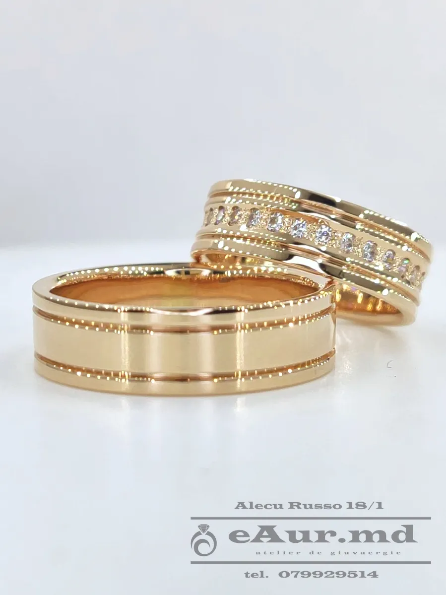 Verighete din aur 585, lățime 8+7mm, 13g, disponibile la comandă, prețul la tel./ Viber/ Watsap