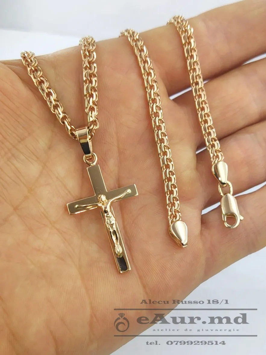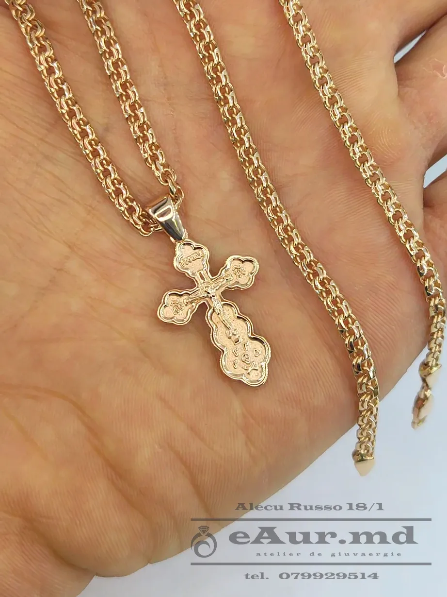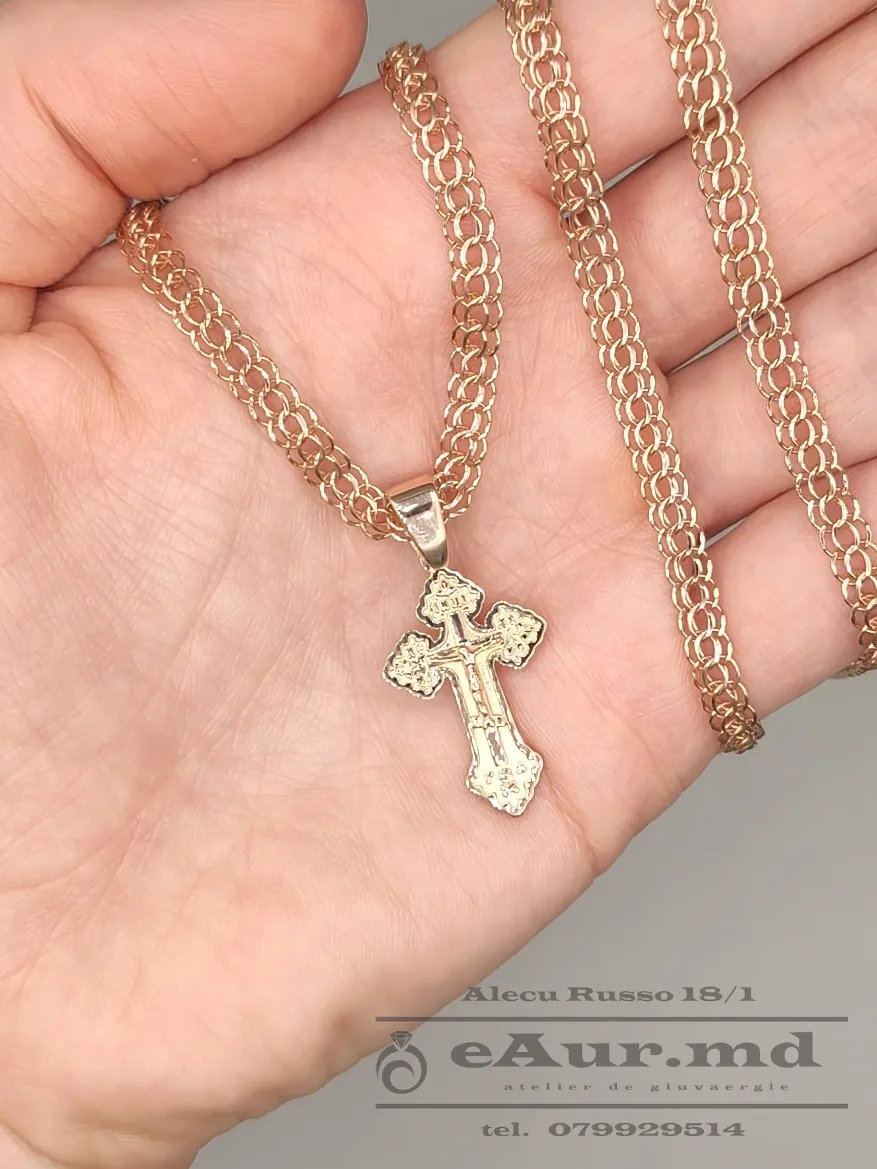 Cruce și lanț k61) 10g (lant) + 3g (cruce), aur 585 (14k)